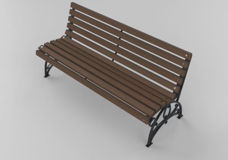 Bancos y Macetas 3D - Banco de madera y hierro 150x60x74cm - Hobbyka – Flora (Bloques 3D | Descarga gratuita)