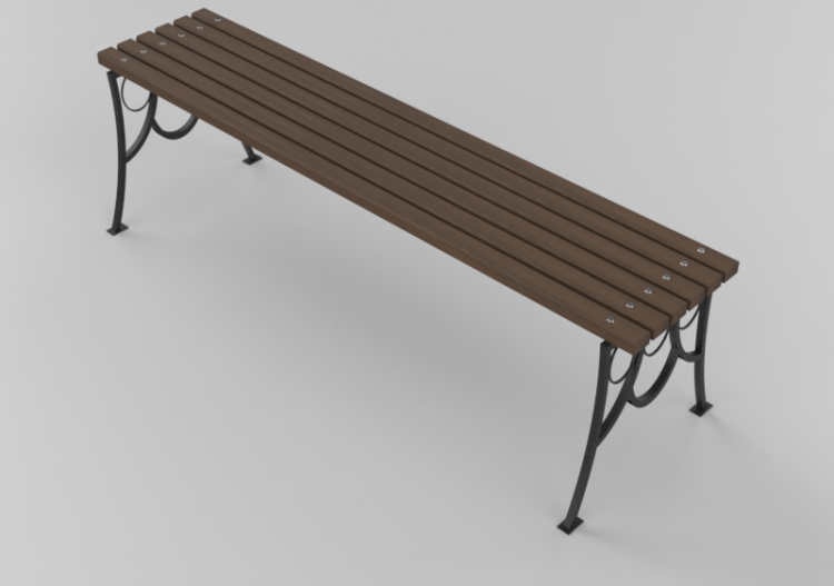 Bancos y Macetas 3D - Banco sin respaldo de madera y hierro 150x44x48cm - Hobbyka – Olympic (Bloques 3D | Descarga gratuita)