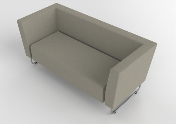 Canapé deux places en tissu avec jambes en acier.