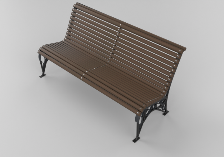 Panchine e Fioriere 3D - Panchina in legno e metallo 150x70x74cm - Hobbyka – Riviera NOVA (Blocchi 3D | Download gratuito)