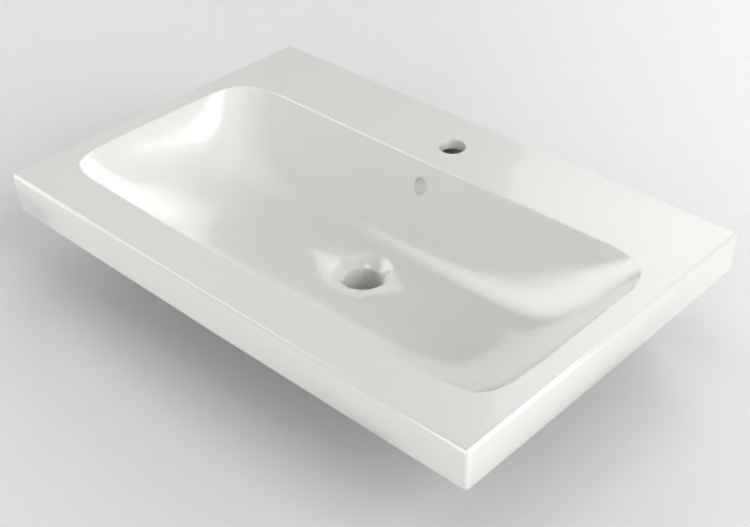 Pia de cerâmica de tamanho 75x48x15 cm.